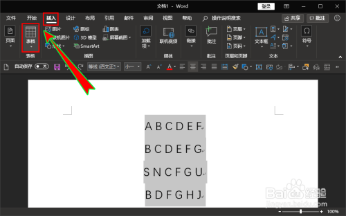 选中后,我们在顶部的菜单栏找到“插入”菜单,然后鄙人拉菜单中继续找到并点击“表格”选项。