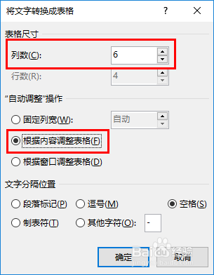 - 我们可以在将文本转换当作表格的弹窗里选择“按照内容调整表格”选项,让表格主动调整一个合适的宽度。