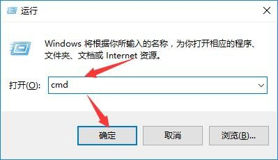 在“运行”对话框的输入框中输入“cmd”并回车或者点击【确定】按钮。
