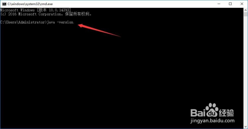 打开“号令提醒符”对话框,如图所示,输入“java -version”号令并回车。