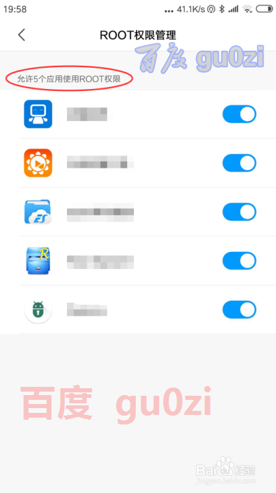 在进入 授权办理后,可以看到这里有 开启ROOT权限的项目,