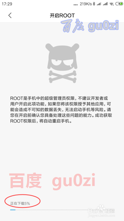 此时要连结手机连接上网络,因为需要下载一个rom文件,之后系统会主动重启,并进行root的操作过程,