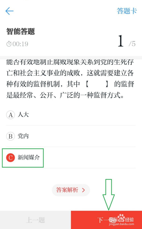 第五步:若是标题问题不会答,可以点开“谜底解析”,会给出提醒。