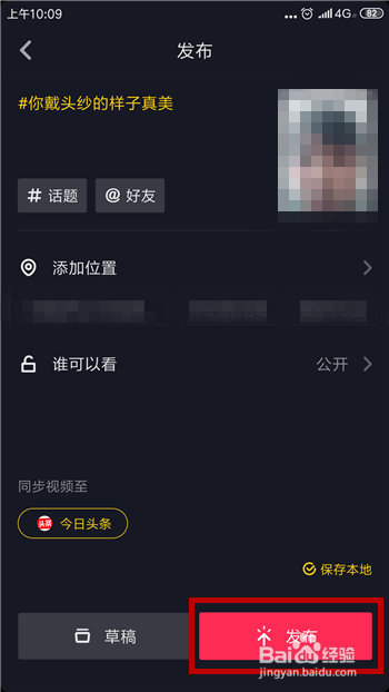 最后会进入到发布界面,点击【发布】即可把视频发布出去。