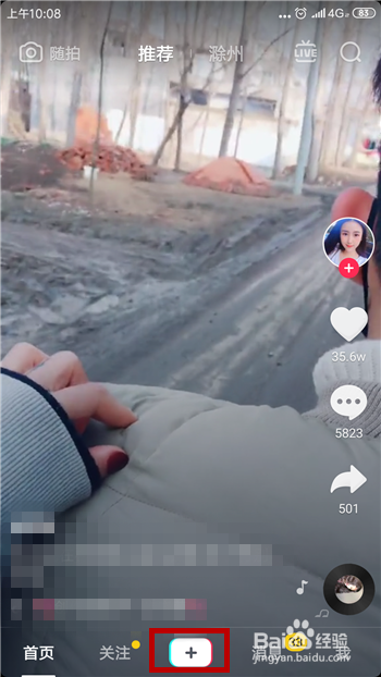 头戴婚纱的视频可直接在抖音拍摄,在抖音里点击【+】。