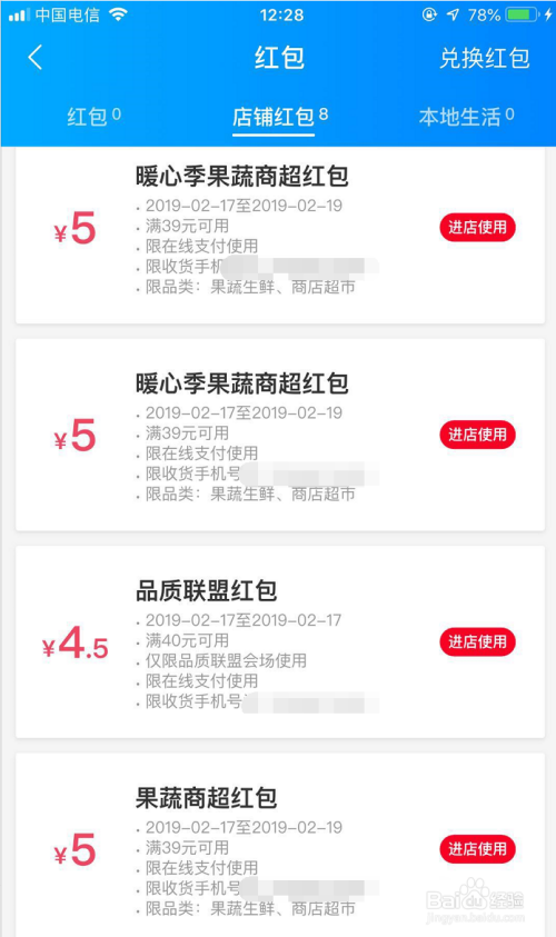 在我的本家儿页下,点击【优惠】,就可查看所有取得的红包,如图所示!有些红包优惠力度确实很大,天天花30秒随手领一下说不定就能省下一笔配送费!