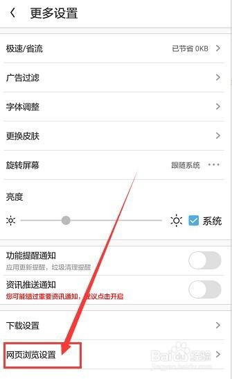 在弹出的页面中,选择“网页浏览设置”(如下图)
