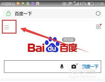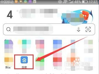 在桌面打开UC浏览器软件,输入“百度”(如下图)