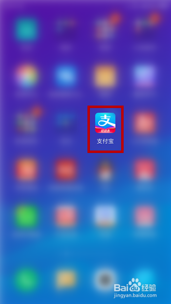 打开手机,找到手机桌面上的付出宝并点击打开,如图所示。