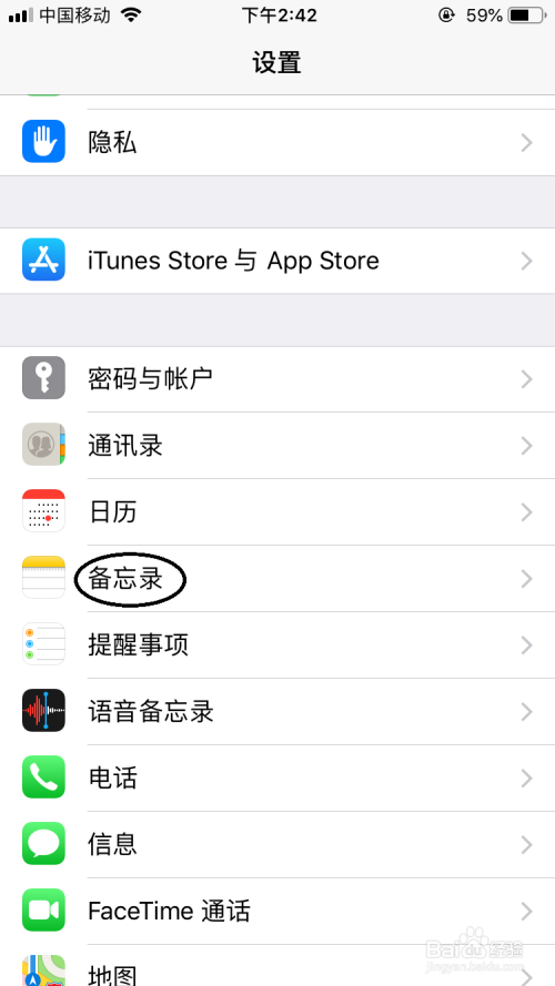 打开手机设置点击“备忘录”。