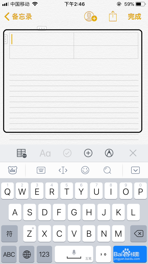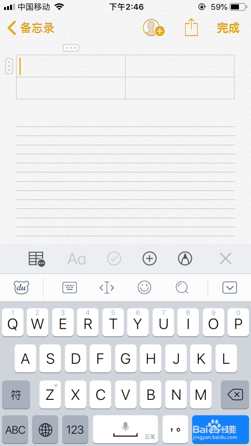 然后打开备忘录软件后在输入栏中呈现了表格的按钮。
