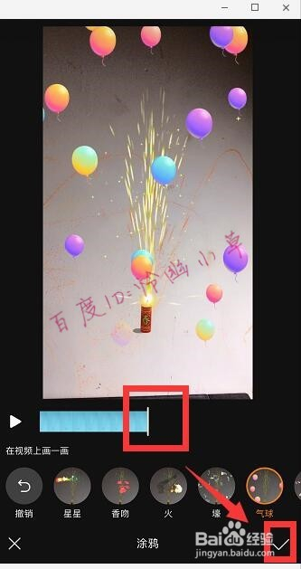 选择“气球”,然后在视频上画一画,一向到视频的末从头至尾,点击“√”。
