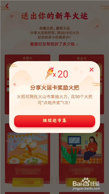 分享竣事后就能随机获得火炬了,小编此次获得了20个火炬。