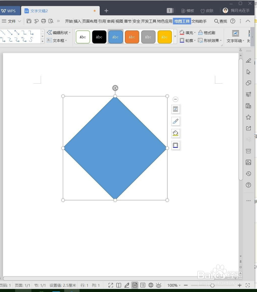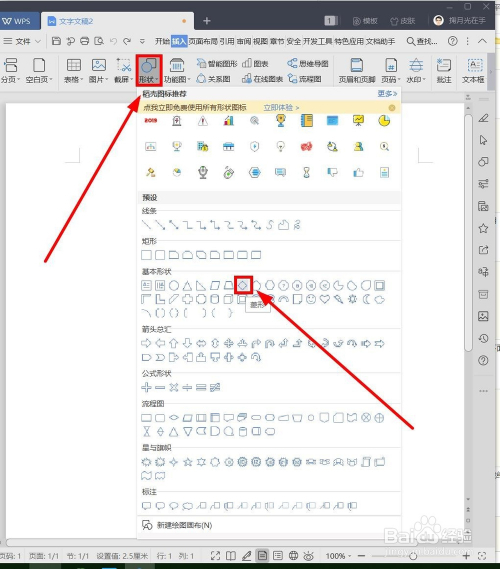 插入正菱形。单击“外形”,鄙人拉菜单中,选择“菱形”,利用“Shift”键插入一个正菱形