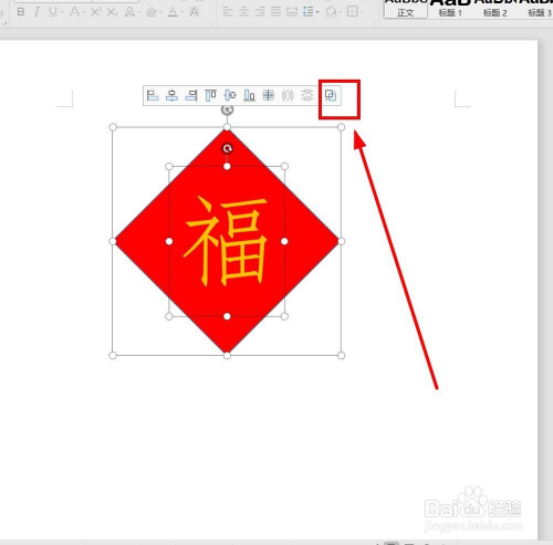 再次单击“组合”按钮,这样无论怎么拖动,菱形和艺术字就当作为一个整体了
