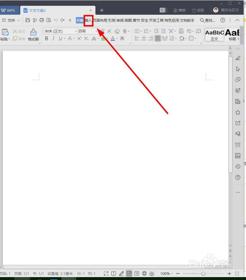 打开WPS程序,找到菜单栏的“插入”选项卡