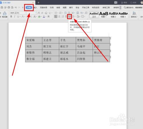 找到菜单栏“段落”选项,单击此中的“分离对齐”