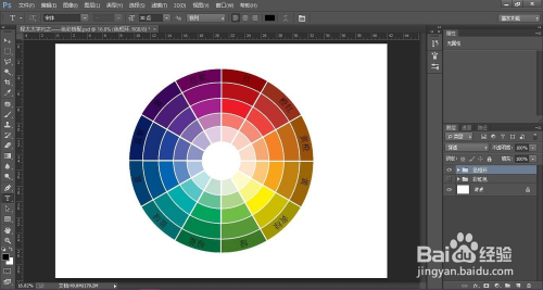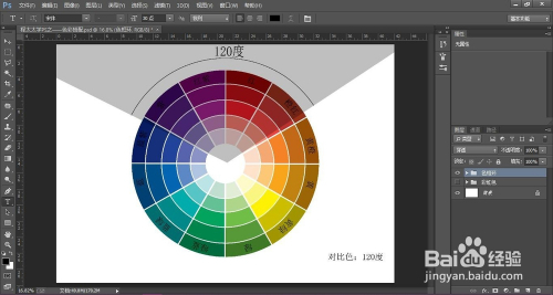 对比色:色相环中相距120度的颜色,为对比色关系。