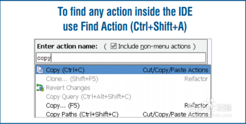 如何查找 若是健忘了如何操作,可以利用 Ctrl+Shift+A 搜刮操作体例,如下图所示: