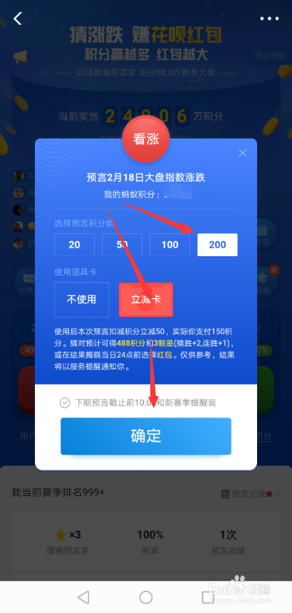 选中好【立减卡】后,在选择猜的积分,然后点击确定,如下图所示。