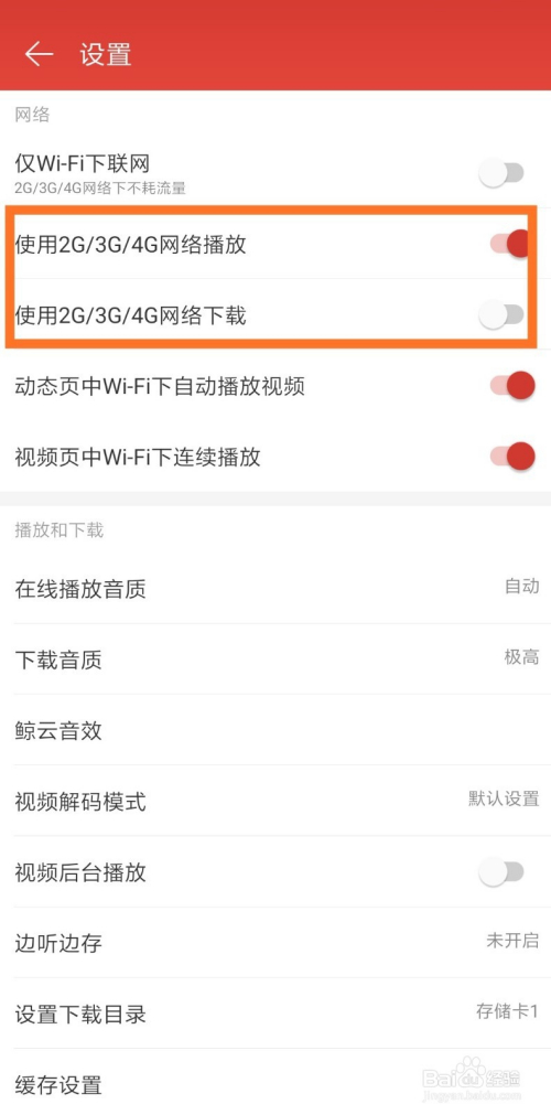 在没有WiFi的时辰,若是需要利用手机流量播放,将其封闭即可。下方对应的还可以设置具体什么环境下利用流量。