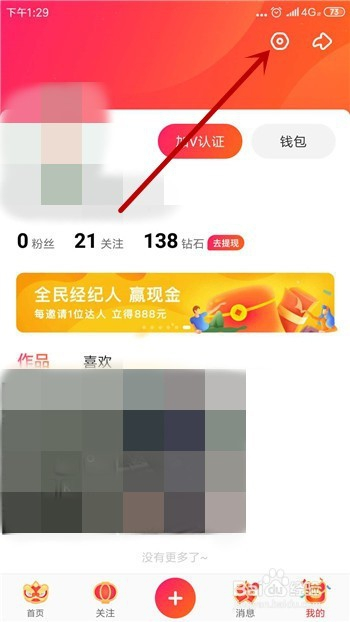 然后在全平易近小视频小我本家儿页点击【设置】,如图所示。