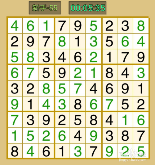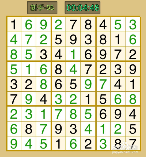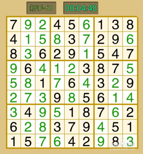 该游戏需要由简入难,然后按照填写的数字,再将未填写的其他位置一一推导出来,跟着推导的数字越多已知前提就越多,最后便能推导出所有位置数字,具体谜底如下。