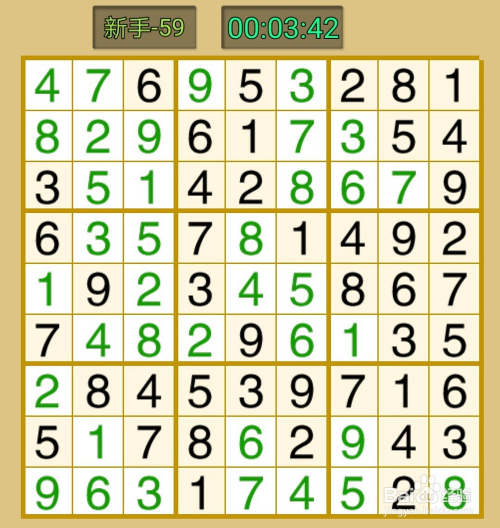 第3宫的独一空位填6,然后填第3行的数字1和3,剩下的空位谜底如下图所示。