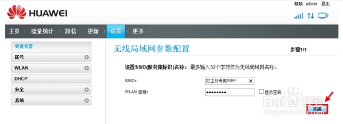 在SSID名称那栏将默认的名称删除,输入新的名称并点击完当作,稍等几秒。
