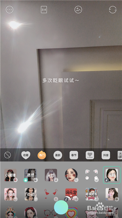 点击一下我们的变胖特效,然后翻转镜头,对着镜头眨着眼,就会发现变胖了10斤。