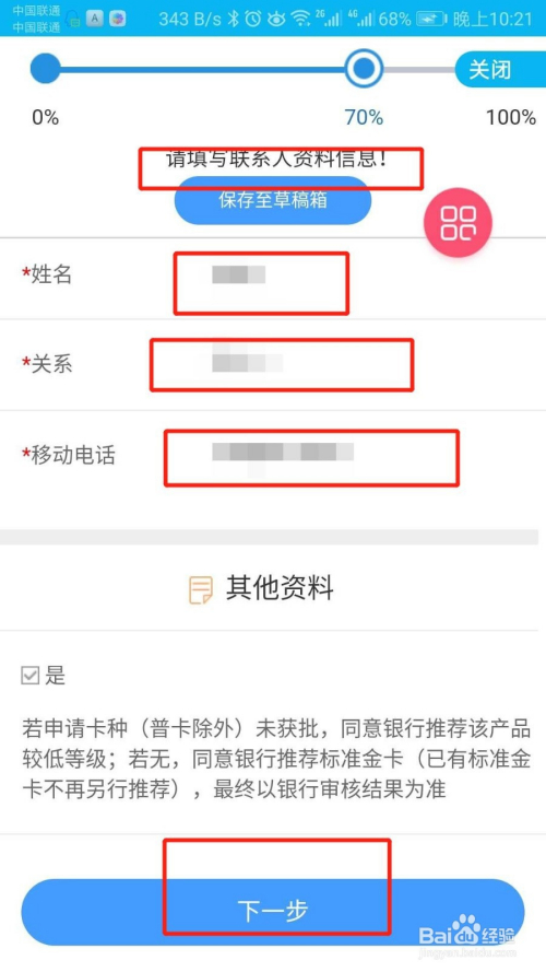 第八步,输入联系人的信息,好比德律风,姓名等等,然后点击下一步,如图所示。