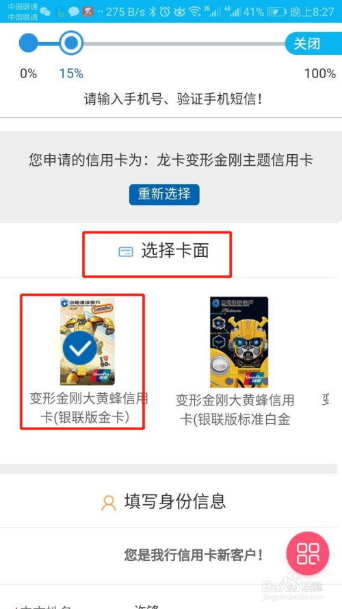 第三步,选择信用卡的类型,好比小编选择了变形金刚的信用卡,然后点击在线申请,如图所示。