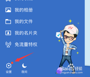 呼出侧边栏之后,我们在左下角找到设置选项,如下图所示,点击进入即可