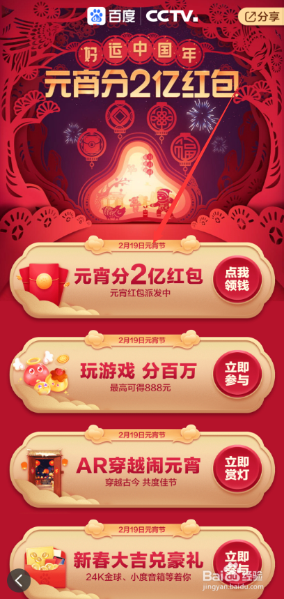 百度元宵节红包怎么抢 百度元宵分2亿红包在哪摇