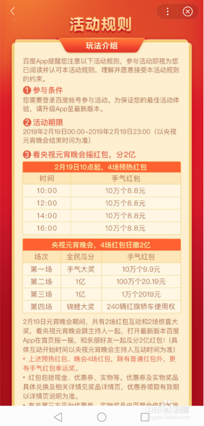 百度元宵节摇红包的活动法则可以本身查看下,如下图所示。