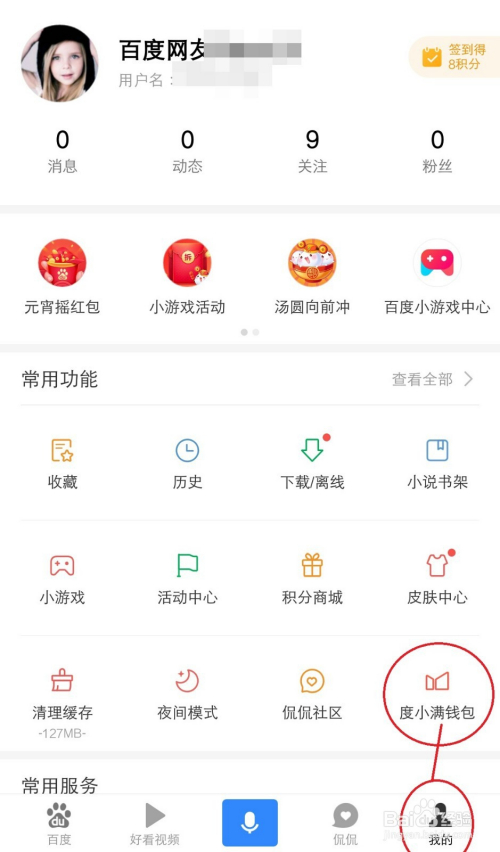 抢到红包提现需绑定【度小满】,选择“我的”,点击【度小满钱包】