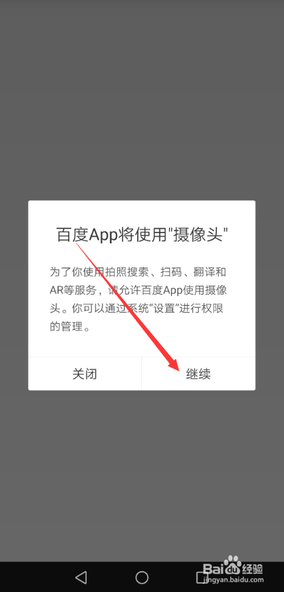 点击后,百度APP弹出获取手机相关权限弹出,直接点击继续,包罗后面需要获取权限的都点击赞成,如下图所示。