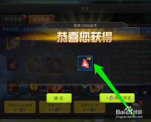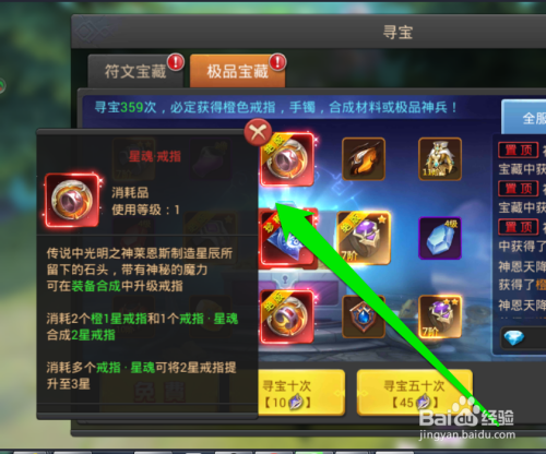 从王者荣耀的游戏中,点击寻宝的功能,从寻宝的功能中有必然的几率,可以获得极品的戒指装备。