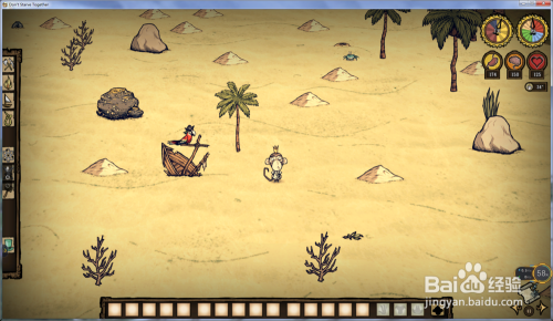 然后这里演示一下进入游戏,选了个山公。(所有海难人物都是可以用的,游戏体验都是很不错的)这里的小木船就是我们的恶魔门的化身啦~