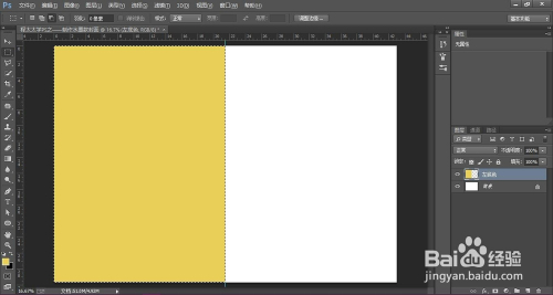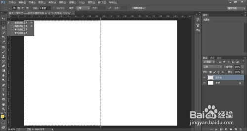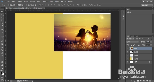 再从左侧标尺处拉出参考线至中间点位置,将图一分为二。