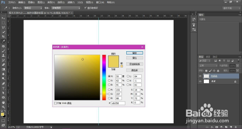 新建图层,这里定名为“左底色“,将前景色设置为黄色,RGB值参数如图。