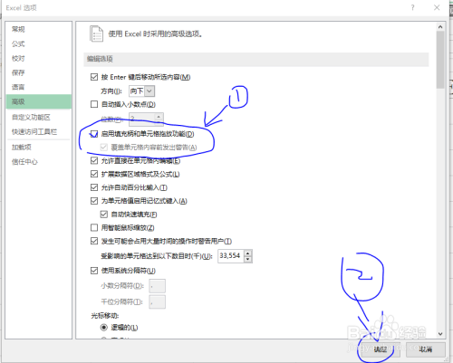 勾选启用填充柄和单位格拖放功能,然后单击右下角简直定数令即可。此时在回到Excel本家儿界面即可发现已经可以利用填充柄功能了。