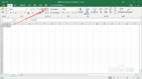 接着选中这个输入了文字的单位格,点击编纂区中的偏向按钮,如下图红色箭头所指。
