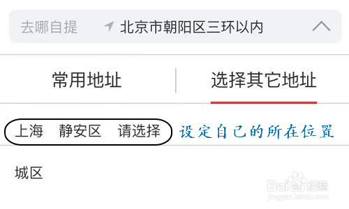 不外没有关系,我们直接点击页面最上方去哪自提右侧的三角形下拉按钮,然后勾选本身的常用地址或者是“选择其他地址”都可以;