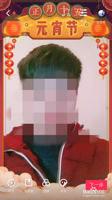 我们添加好音乐,把镜头瞄准本身,起头拍摄,拍摄完毕后,点击下一步,进入编纂的界面。
