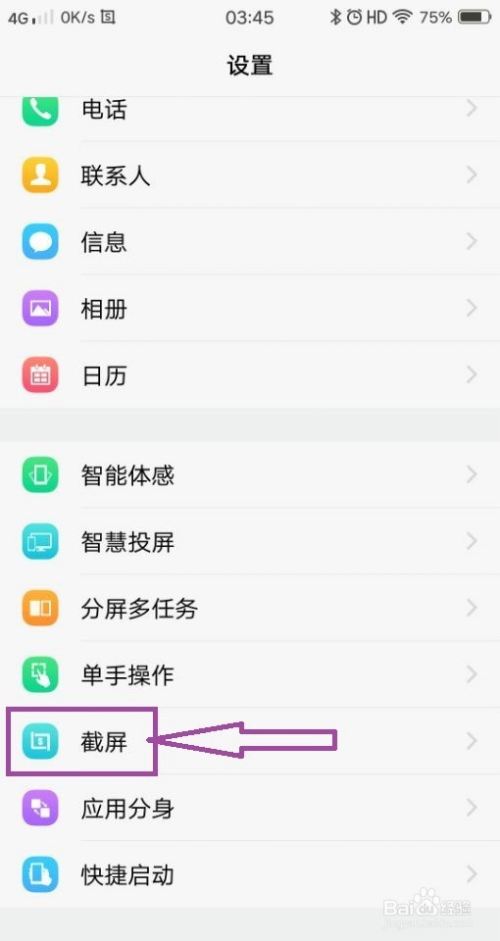 点击“设置”,进入到设置的窗口页面,在页面上我们可以看到“截屏”。