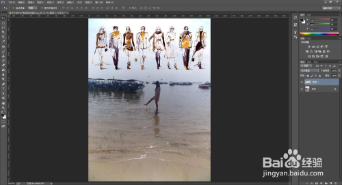 再打开一张白色底布景的素材,将图其拖动到图片里。
