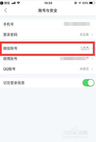 点击后在账号与平安本家儿页下【微信账号】一栏(此时的状况是未绑定),点击该栏进行绑定!