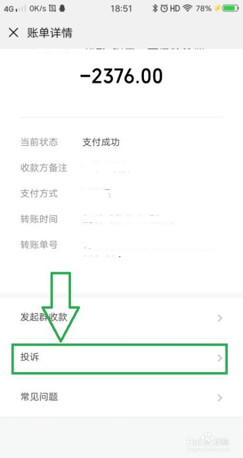 小我收条目:在买卖记实中找到我们搞错的买卖明细,点击该买卖明细,进入到账单详情页面,若是是小我收条目的话,我们在页面上我们可以看到“投诉”。