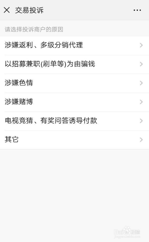 点击“投诉商户”,进入到买卖投诉页面,在页面上选择投诉的原因,完当作买卖投诉即可。